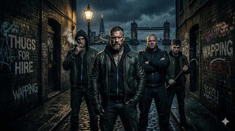 Imagem ilustrativa de Thugs For Hire (Criminosos de Aluguel) em Londres, gerada por IA.