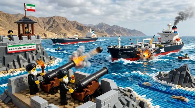 Imagem ilustrativa sobre a possibilidade real do Irã manter fechado o Estreito de Ormuz, criada por IA.
