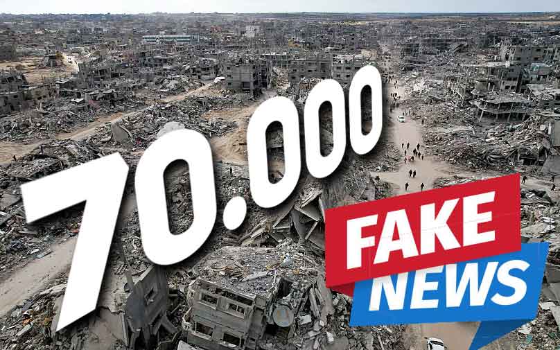 – Manchetes afirmando que as Forças de Defesa de Israel “aceitaram” o número de 70.000 mortos divulgado pelo Hamas surgiram de um comentário anônimo em um briefing — não de dados oficiais — e foram posteriormente esclarecidas pelas Forças de Defesa de Israel, afirmando que essa não era a sua posição oficial. Mesmo assim, a narrativa se espalhou globalmente no dia 29 de janeiro.